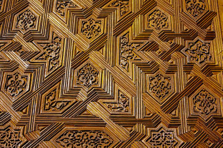 Detailed background of the intricate patterns on a wall of the Nasrid Palace, Alhambra, Granada, Spain