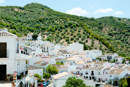 White Andalusian village - pueblo blanco - in the mountain range in Casares during sunset