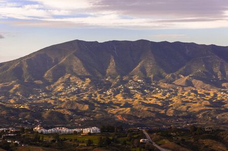 Mountain And Sunset at Mijas, Spain. Dark Silhouette of Mountain