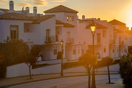 beautiful, picturesque street, narrow road, white facades of buildings, Spanish architecture, sunny day