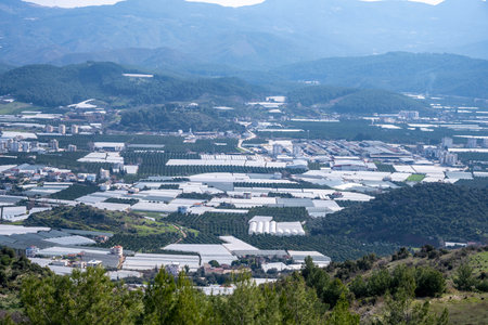 Aerial shot of greenhouses and fruit orchards in Andalusia, Spain
