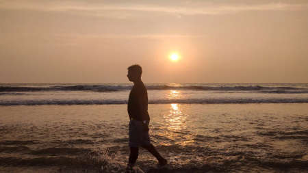 Man walking in the beach during sunset