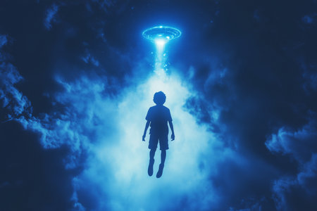 An intriguing image capturing a captivating scene of alien abduction, evoking a sense of mystery and fascination.
