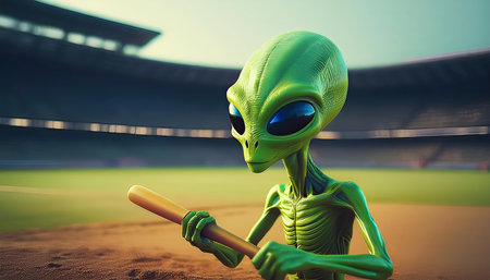 Portrait of an alien playing baseball. digital illustration