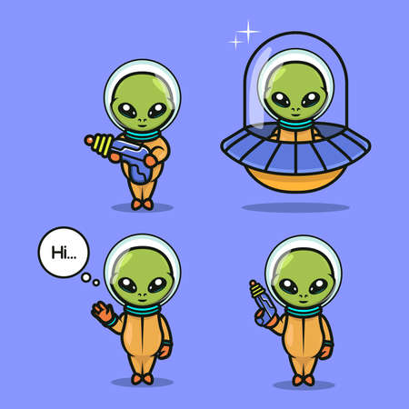 Set of cute alien mascot design illustration vector template
