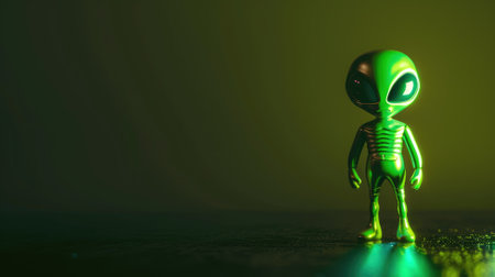 Green alien figure in dim light, glowing, futuristic setting