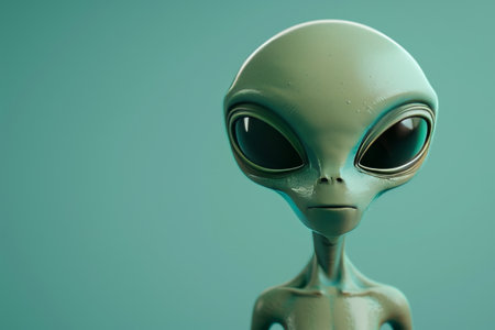curious cartoon-style mint green alien.