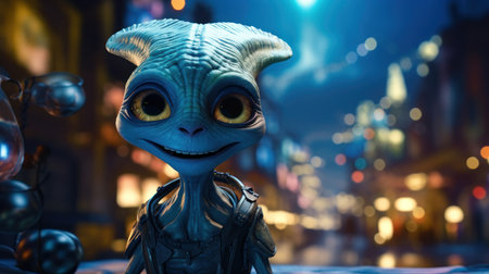 An AI generated illustration of an alien character against a blurry background