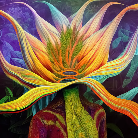 A mesmerizing abstract floral design featuring vivid petals and intricate details, set against a dreamy backdrop. Ideal for art and nature themes.