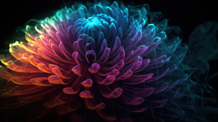 Creative colorful design of a chrysanthemum. Chrysanthemums, also known as mums, are popular garden flowers that come in a variety of shapes and sizes, ranging from pompon to daisy-like and come in a wide range of colors.