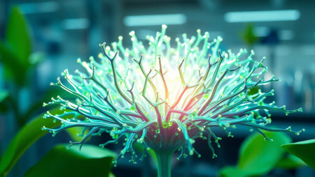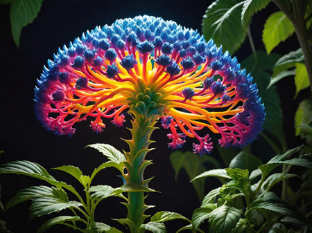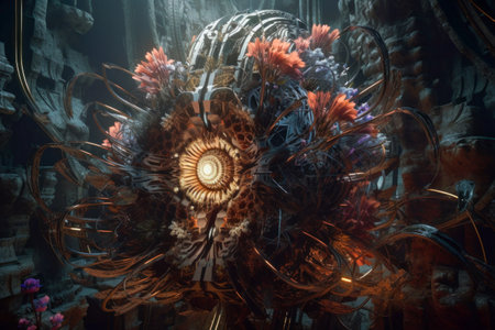 Glowing biomechanics alien extraterrestrial flower abstract background