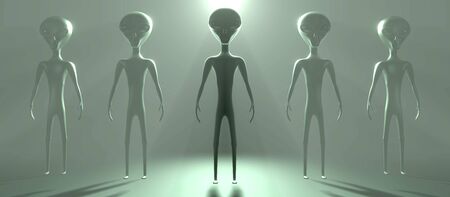 3D rendering of a group of alien walking in the fog.
