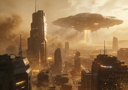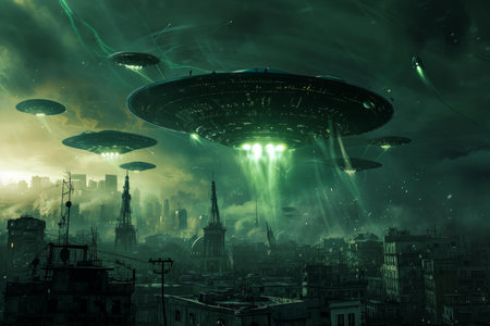 Invasion Imminent: UFO Fleet Engulfs Downtown