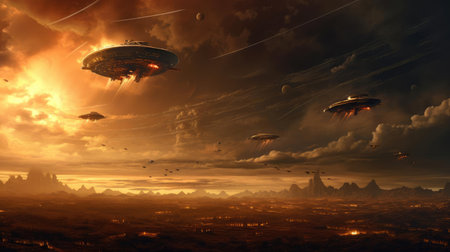 Aliens spaceships, Mystery ufo on sky, Generative AI