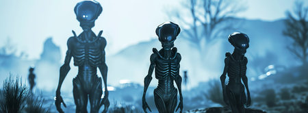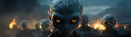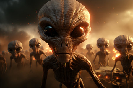 group of aliens close-up, alien creature. space dwellers. space aliens.