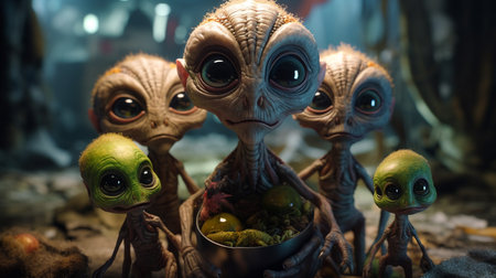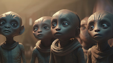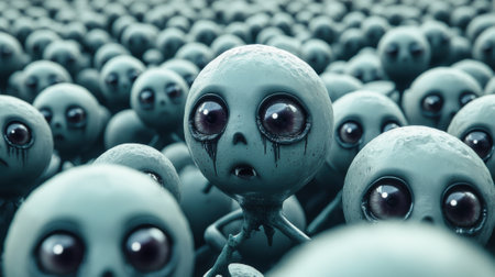 A group of alien creatures with big eyes and a black eye.generative ai