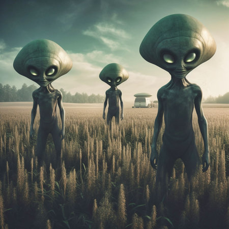 Alien Encounter: A speculative portrayal of an encounter between humans and extraterrestrial beings.Generated with AI