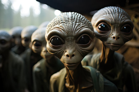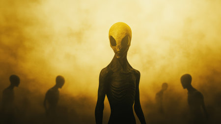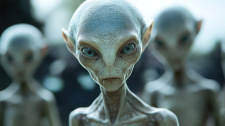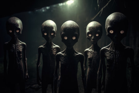 A group of aliens with glowing eyes. concept of science fiction and extraterrestrial themes.