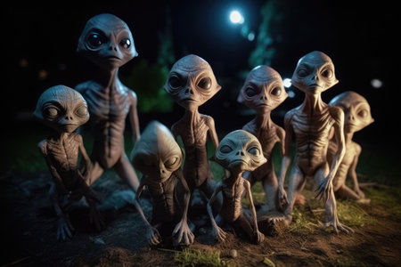 alien group of alien in a dark forest. 3 d rendering, Aliens in the dark, AI Generated