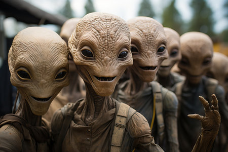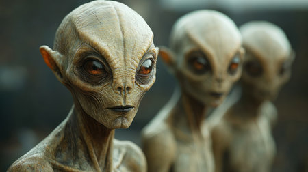 group of aliens close-up, alien creature. space dwellers. space aliens.