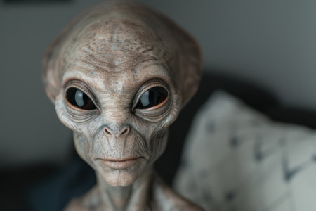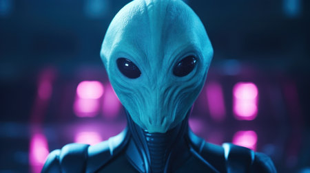 Close-Up of an Alien with Large Eyes in a Mysterious Sci-Fi Setting. High quality photo