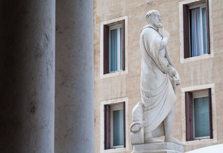 Florence, Italy - March 1, 2019: Galileo Galilei Statue outside the Uffizi Gallery in Florence