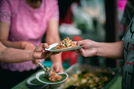 The poor in society are helped by lunch, From the sharing of compassionate people: Concepts of food donations and aid