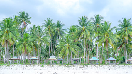 Landscape of green tropical forest with many coconut palm trees
