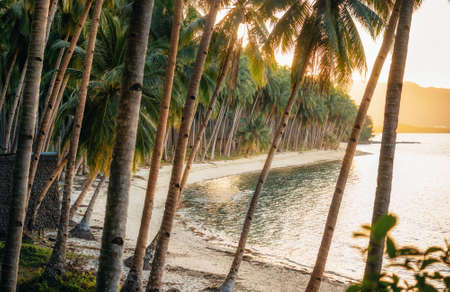 Jungle with palm trees on Coconut Beach in Port Barton, Palawan, Philippines