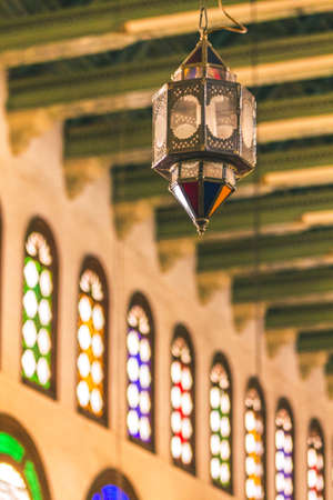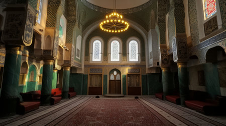 August 11, 2022 Beldibi, Kemer district, Antalya Province, Turkey. Mosque interior. Background with copy space for text