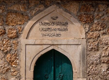 BIH, MOSTAR - APRIL 21 2019: Door of the Koski Mehmed Pasha Mosque in Mostar Bosnia and Herzegovina