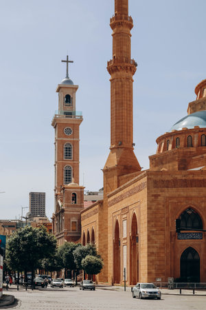 Beirut, Lebanon — 24.04.2023: The Mohammad Al-Amin Mosque, a Sunni Muslim mosque located in downtown Beirut.