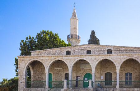 Larnaca, Cyprus - October 16 2019: the exterior view of Hala Sultan Tekke on October 16 2019 in Larnaca, Cyprus.
