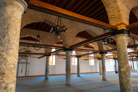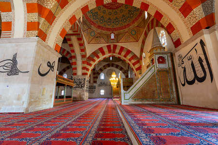 Interior of Bayezid II Mosque in Edirne. HDR photo. Ramadan or islamic architecture background photo. Edirne Turkey - 10.25.2021
