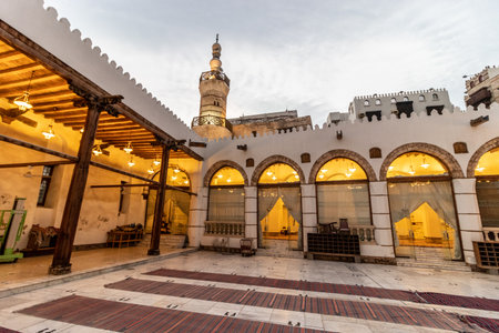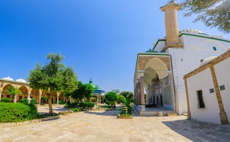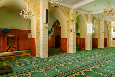 ACRE, ISRAEL - SEPTEMBER 18, 2017: View of the inner yard of El-Jazzar Mosque (the white mosque) in Acre (Akko), Israel