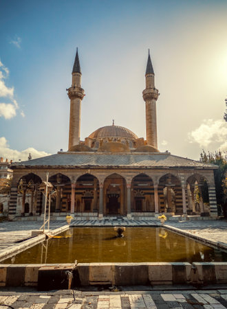 The Tekkiye Mosque in Damascus, Syria, is located on the banks of the Barada River. It is one of the finest examples of Ottoman architecture.