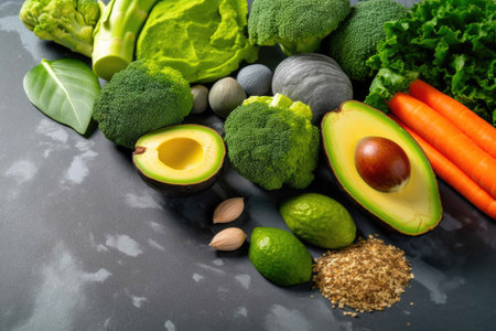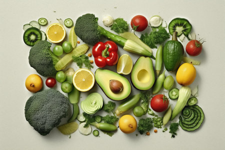 Variety of vegan diet foods, showcasing the freshness and nutrition of plant-based ingredients. Generative AI