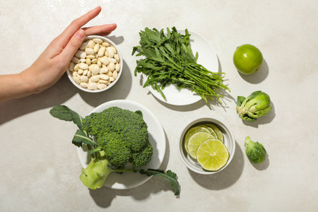 Healthy vegetarian food concept background, fresh green food selection for detox diet