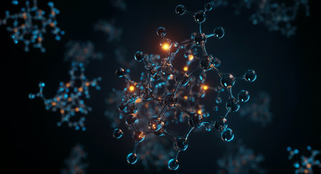 Abstract representation of molecular structures with luminous connections highlighting the intricate beauty of chemical composition and bonds in a dark atmosphere