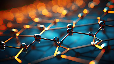 Structure of lattice connecting atoms. Molecule in hi tech style. Generative AI illustration