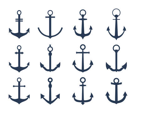 Anchor icon set. Anchor symbol logo. Anchor marine icon.
