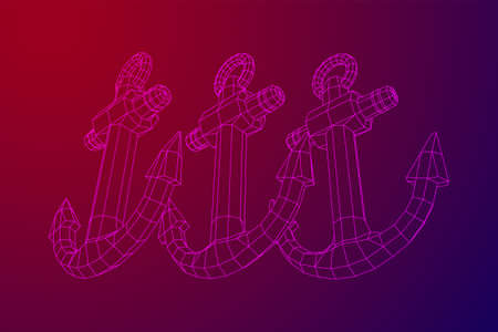 Nautical sea anchor for vessel ship. Wireframe low poly mesh vector illustration