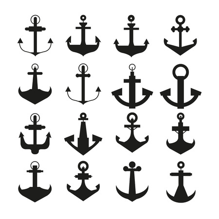 Vector Anchors. Anchor Silhouette Icon Set. Black and White Anchor with Outline. Anchor Design Template Collection. Vector Illustrtion