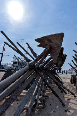 Iron anchors in a fishing port