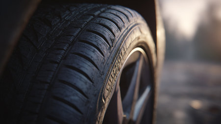 Snow tires on wheels, ready to conquer challenging winter weather, close-up