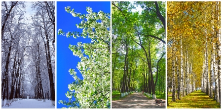 Collage of four seasons - spring, summer, autumn and winter.