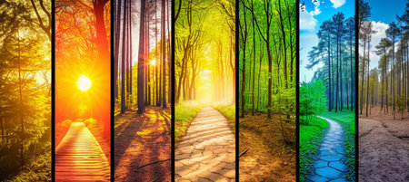 colors of nature, collage of pictures with smooth color transitions. Beautiful nature seasonal background. Vibrant colorful images of different times of year 4 seasons, beauty of nature. Weather forecast concept.