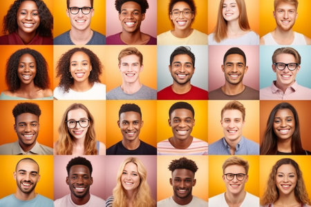 Diverse collection of multiethnic portraits showcasing joyful human expressions
