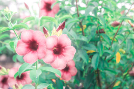 flowers vintage ,pink flowers in the garden plant and filter vintage lighting style in the romance day background and copy space