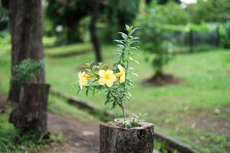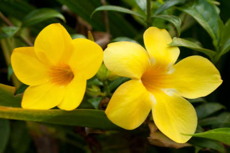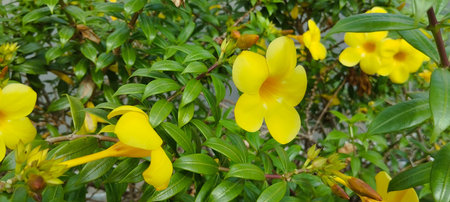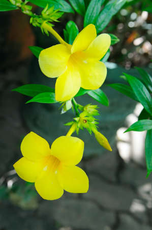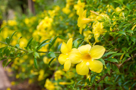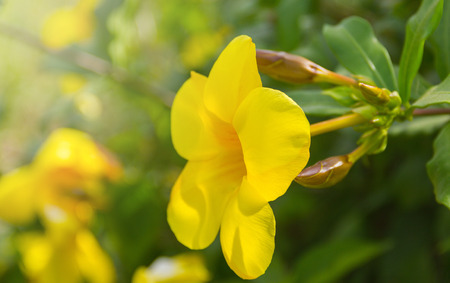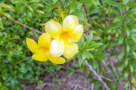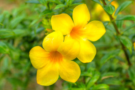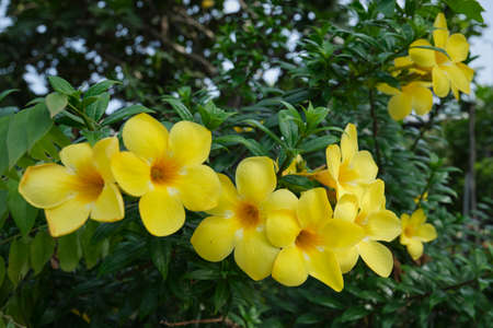 Allamanda cathartica yellow and beautiful petals in a Thai public park